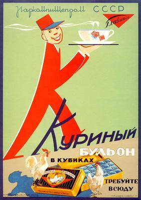Куриный бульон в кубиках требуйте всюду Советский рекламный плакат