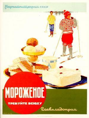 Плакат рекламы товаров и услуг в СССР. Советский рекламный плакат Мороженое требуйте всюду. Советское - значит отличное. выбрать материал для печати плаката Размер печатного плаката можно менять. Цена указана за метр квадратный.