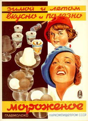 Зимой и летом вкусно и полезно мороженое Советский плакат