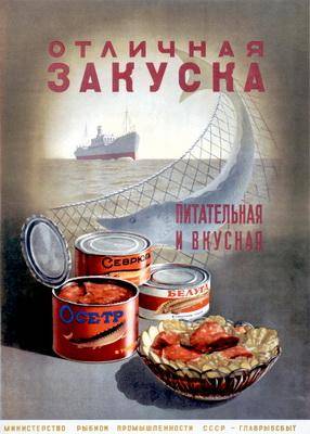 Плакат рекламы товаров и услуг в СССР. Советский рекламный плакат Отличная закуска питательная и вкусная. Советское - значит отличное. выбрать материал для печати плаката Размер печатного плаката можно менять. Цена указана за метр квадратный.