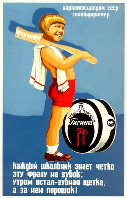 Плакат рекламы товаров и услуг в СССР. Советский рекламный плакат Главпарфюмер зубной порошок. Советское - значит отличное. Возможна печать на различных материалах: варианты материалов для печати плаката Цена зависит от размера и материала печати и указана за метр квадратный. Размер печатного плаката можно менять.