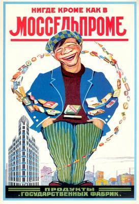 Плакат рекламы товаров и услуг в СССР. Советский рекламный плакат Нигде кроме как в моссельпроме. Советское - значит отличное. выбрать материал для печати плаката Размер печатного плаката можно менять. Цена указана за метр квадратный.