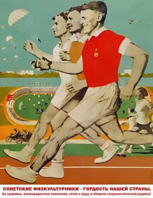 Плакат СССР Советские физкультурники. Советский плакат. Средство агитации воздействующее на сознание людей с целью побуждения их к политической или другой активности. выбрать материал для печати плаката Размер печатного плаката можно менять. Цена указана за метр квадратный.