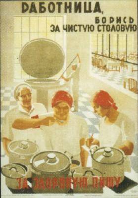 Плакат СССР, Работница, борись за чистую столовую! Советский плакат. Средство агитации воздействующее на сознание людей с целью побуждения их к политической или другой активности. варианты материалов для печати плаката. Размер печатного плаката можно менять. Цена указана за метр квадратный.