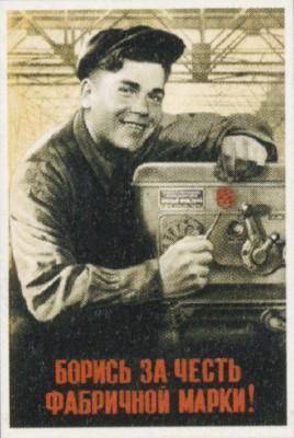 Плакат СССР Борись за честь фабричной марки! Средство агитации воздействующее на сознание людей с целью побуждения их к политической или другой активности. Возможна печать на различных материалах: варианты материалов для печати плаката Цена зависит от размера и материала печати и указана за метр квадратный. Размер печатного плаката можно менять.