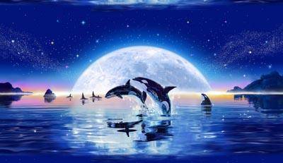 Фреска мир животных касатки на фоне луны