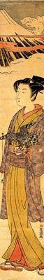 Японская гравюра 18 века художник Хокусай девушка в национальном костюме