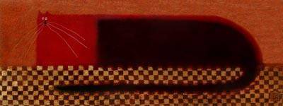 Репродукция картины современной живописи Кот красное и черное. Предлагаем печать работ интересного художника на холстах и других текстурах для оформления дизайна Вашего помещения. Холсты натягиваем на деревянный подрамник. варианты печати и оформления картины. Материал подбирается для наиболее точной передачи техники живописи. Цена зависит от материала и указана за метр квадратный печати на холсте.