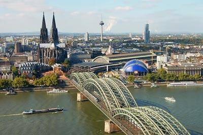 Захватывающая панорама города Кельн и реки. Данное изображение безусловно визуально расширит ваше помещение, стена просто перестанет существовать. Интерьерная, широкоформатная печать для оформления дизайна Вашего помещения. выбрать материал для печати обоев. Цена указана за метр квадратный печати.