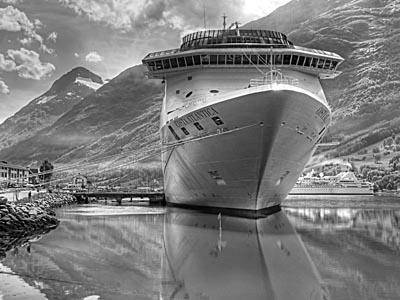 Черно-белое фото корабль океанский лайнер Costa Atlantica