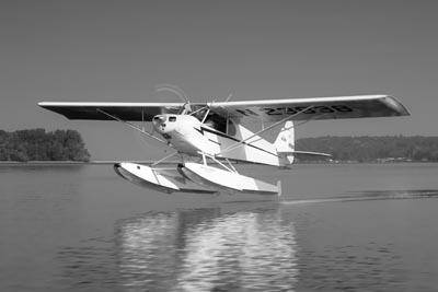 Черно-белый постер на тему авиации самолет гидроплан взлетающий с водной поверхности. выбрать материал для печати постера и вид оформления. Цена указана за метр квадратный печати.