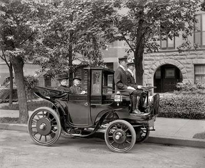 Сенатор США Джордж Пибоди Ветмор в своём электромобиле Krieger Electric Carriage на Род-Айленде