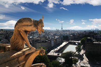 Голубое небо над Парижем и горгулья