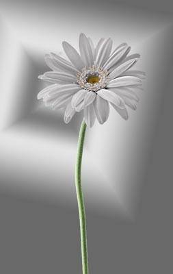 Художественное фото, постер: изящество и красота герберы. Цветок на серебряном фоне. выбрать материал для печати и вид оформления постера. Цена указана за метр квадратный.