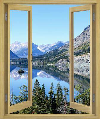 Красивый вид из окна на горное озеро. Интерьерная, широкоформатная печать для оформления дизайна Вашего помещения. выбрать материал для печати обоев. Цена указана за метр квадратный печати.