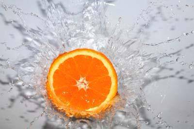 Постер свежий апельсин в чистой холодной воде, изображение высокого разрешения для оформления интерьера кухни или для рекламы. варианты печати и оформления постера. Цена указана за метр квадратный печати.