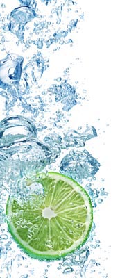 Сочный лайм в бурлящей воде изображение высокого разрешения для оформления интерьера и рекламы фруктов. Макросъемка. выбрать материал для печати и оформления постера. Цена указана за метр квадратный.