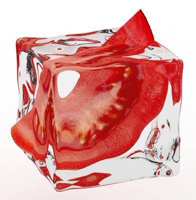 Рекламное фото томатов, фотография высокого разрешения для оформления интерьера и рекламы. Макросъемка помидор и лед. Возможно изготовление постеров - плакатов на различных материалах. выбрать материал для печати и оформления постера или фотографии. Цена указана за метр квадратный.