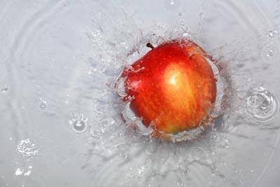 Макросъемка фруктов, постер высокого разрешения для оформления интерьера и рекламы. Свежее и чистое яблоко в брызгах воды. Возможно изготовление постеров - плакатов на различных материалах. выбрать материал для печати и оформления постера или фотографии. Цена указана за метр квадратный.