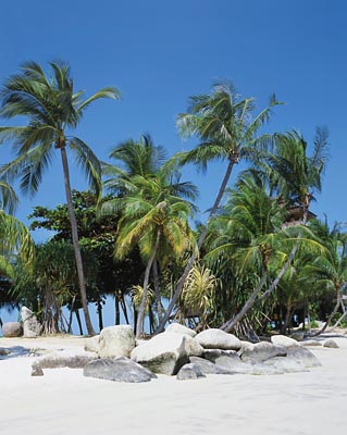 Предлагаем Вам изображение тропической природы пейзаж с пальмами и белый песок для изготовления обоев и для солнечного дизайна интерьера. Интерьерная, широкоформатная печать для оформления дизайна Вашего помещения. выбрать материал для печати обоев. Цена указана за метр квадратный печати.