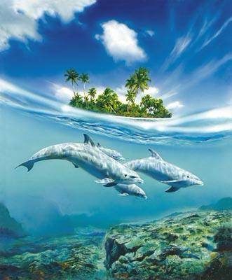 Предлагаем Вам фотообои на тему подводного мира, грация семьи дельфинов. Широкоформатная печать для оформления дизайна помещения. выбрать материал для печати обоев. Цена указана за метр квадратный.