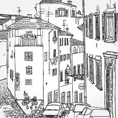 Предлагаем Вам изображение высокого разрешения современной графики Улицы старого городка. Широкоформатная печать для оформления дизайна помещения. выбрать материал для печати обоев и фресок. Цена указана за метр квадратный.