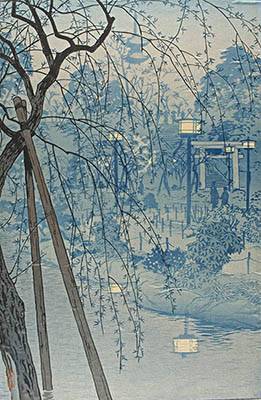 Предлагаем напечатать фреску для современного интерьера на тему восточной живописи, картина японского художника зимние сумерки. варианты печати обоев и фресок для стен. Цена указана за метр квадратный.