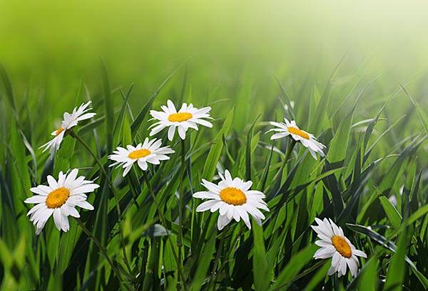 Предлагаем Вам красивое изображение полевые цветы белые ромашки и зеленая трава. Широкоформатная печать для оформления дизайна помещения. выбрать материал для печати обоев. Цена указана за метр квадратный печати.