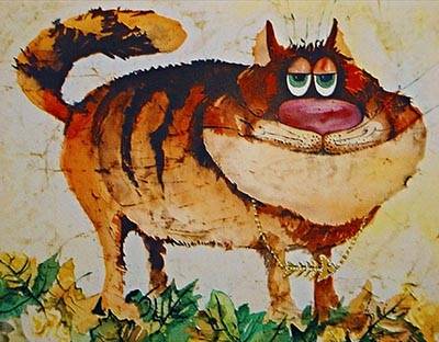 Репродукция картины современной живописи Улыбка кошки. Предлагаем печать работ интересного художника на холстах и других текстурах для оформления дизайна Вашего помещения. Холсты натягиваем на деревянный подрамник. варианты печати и оформления картины. Материал подбирается для наиболее точной передачи техники живописи. Цена зависит от материала и указана за метр квадратный печати на холсте.