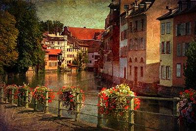 Предлагаем Вам красивое изображение в стиле гранж набережная в старом городе Страсбург для изготовления современной фрески. выбрать материал для печати обоев. Цена указана за метр квадратный.