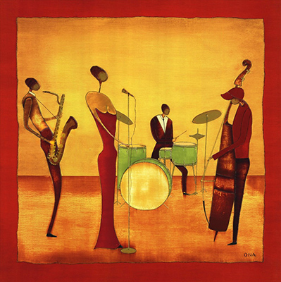 Репродукция картины современной живописи Джаз художник Thierry Ona. Предлагаем печать работ интересного художника на холстах и других текстурах для оформления дизайна Вашего помещения. Холсты натягиваем на деревянный подрамник. варианты печати и оформления картины. Материал подбирается для наиболее точной передачи техники живописи. Цена зависит от материала и указана за метр квадратный печати на холсте.