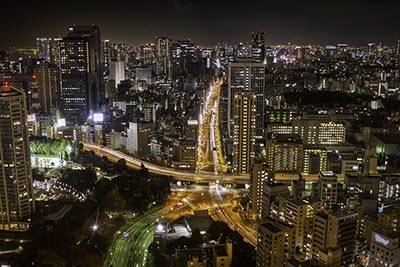 Вид с верху на ночной мегаполис