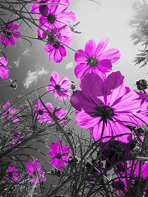 Черно-белое небо и фиолетовые цветы