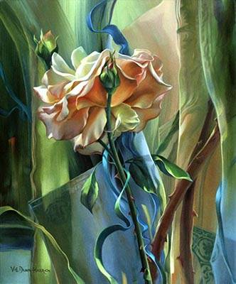 Репродукция картины американской художницы Vie Dunn-Harr цветок розы. Предлагаем печать художественных работ классической живописи на холстах и текстурах для оформления помещений. Холсты натягиваем на деревянный подрамник. варианты печати и оформления картины. Материал подбирается для наиболее точной передачи техники живописи. Цена зависит от материала и указана за метр квадратный печати на холсте.