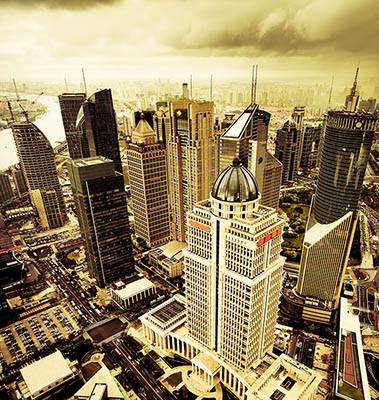 Вид на мегаполис, небоскребы деловой центр города. Интерьерная, широкоформатная печать для оформления дизайна Вашего помещения. выбрать материал для печати обоев. Цена указана за метр квадратный печати.