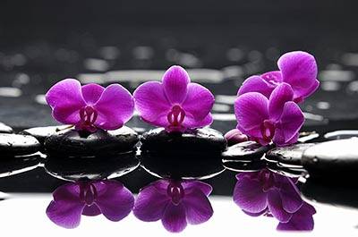 Предлагаем Вам изображение высокого разрешения Три цветка орхидеи на черных камнях. Широкоформатная печать для оформления дизайна помещения. выбрать материал для печати обоев и фресок. Цена указана за метр квадратный.