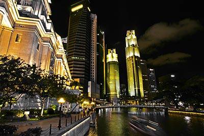 Ночной город Сингапур желтые огни