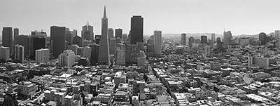 Предлагаем Вам дизайнерское и романтическое изображение черно-белая панорама города Сан-Франциско, вид сверху для изготовления современных фотообоев. Интерьерная печать для оформления дизайна Вашего помещения. Данное изображение безусловно расширит Ваше помещение, стена просто перестанет существовать. выбрать материал для печати обоев. Цена указана за метр квадратный изделия.