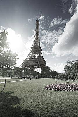 Предлагаем Вам стильное, почти монохромное изображение, летний полдень в Париже, Эйфелева башня и Елисейские поля, для изготовления фотообоев. Интерьерная печать для оформления дизайна Вашего помещения. выбрать материал для печати обоев. Цена указана за метр квадратный печати.
