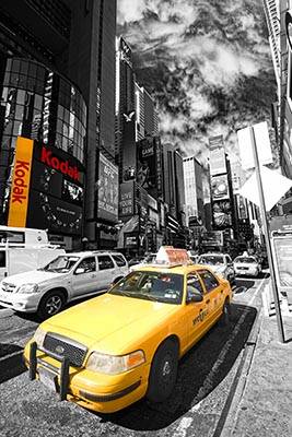 Предлагаем Вам изображение высокого разрешения Желтое такси в черно-белом Нью Йорке. Широкоформатная печать для оформления дизайна помещения. выбрать материал для печати обоев и фресок. Цена указана за метр квадратный.