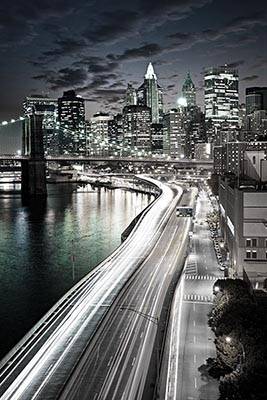 Предлагаем Вам черно-белое изображение высокого разрешения с элементами цветного, ночной вид на набережную Нью Йорка игра теней, для изготовления фотообоев. Интерьерная печать для оформления дизайна помещения. выбрать материал для печати обоев. Цена указана за метр квадратный.