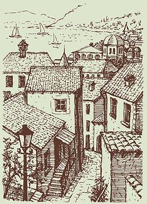 Предлагаем Вам стильное графическое и лаконичное изображение архитектуры старого города для изготовления художественного панно. Данное изо можно печатать и на холсте как картину и оформлять на деревянный подрамник. Интерьерная, широкоформатная печать для оформления дизайна Вашего помещения. выбрать материал для печати фрески или картины. Цена указана за метр квадратный печати фрески.