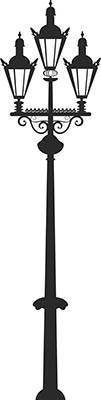 Виниловая наклейка на стену или стикер на цветной пленке Старинный уличный фонарь три рожка. Быстрое, легкое и модное оформление дизайна стен, обоев, дверей, идеально клеить на стекло, пластик. Наклейка вырезается из виниловой пленки любого цвета. В комплект входит монтажная пленка, размер наклейки можно менять. Цена зависит от размера стикера сложности резки и указана за метр квадратный.
