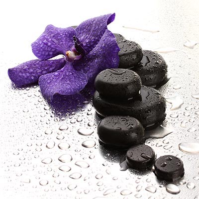 Предлагаем Вам художественное изображение для изготовления обоев интерьерного качества фиолетовый цветок галька и капли воды. Интерьерная широкоформатная печать для оформления помещений. выбрать материал для печати обоев и фресок Цена указана за метр квадратный.