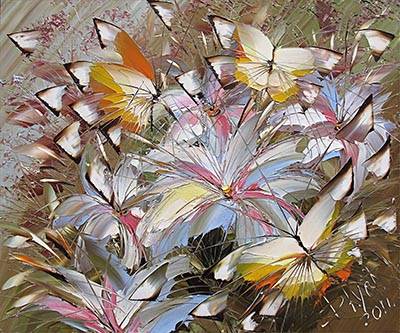 Предлагаем Вам репродукцию картины современной живописи Цветы лилии и бабочки. Выполняем печать работ известных мастеров живописи на холстах и других текстурах для оформления дизайна Вашего помещения. Холсты натягиваем на подрамник. варианты печати и оформления картины. Материал подбирается для наиболее точной передачи техники живописи. Цена зависит от материала и указана за метр квадратный печати на холсте.