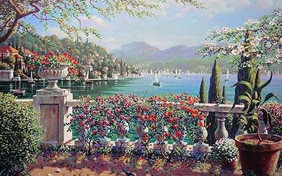 Вид на залив с террасы, картина классической живописи. Интерьерная, широкоформатная печать для оформления дизайна Вашего помещения. выбрать материал для печати фрески. Цена указана за метр квадратный печати.