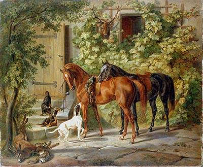 Предлагаем Вам картину известного немецкого художника Альбрехта Адама Сцена после охоты для изготовления художественного панно. Художник прославился как мастер писать лошадей. Интерьерная, широкоформатная печать для оформления дизайна Вашего помещения. выбрать материал для печати фрески. Цена указана за метр квадратный печати.