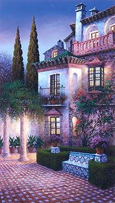 Предлагаем Вам репродукцию картины современной живописи: Сад мавританской виллы для изготовления фрески. Выполняем печать работ живописи и графики на холстах и других текстурах для оформления дизайна Вашего помещения. варианты печати и оформления фрески или картины. Высокое разрешение изображения позволяет изготовить как картину, так и фреску на всю стену.