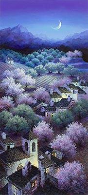 Предлагаем Вам очень необычное и загадочное изображение в стиле фэнтези Цветение миндаля и оливок в лунную ночь современного художника Луиса Ромеро. Широкоформатная печать для оформления дизайна Вашего помещения. выбрать материал для печати обоев. Цена указана за метр квадратный печати.
