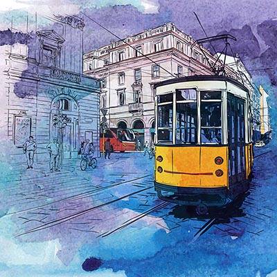 Предлагаем сюжет для оформления интерьеров в графическом стиле, зарисовки из жизни города, улица и трамвайчик. Интерьерная, широкоформатная печать для оформления дизайна Вашего помещения. выбрать материал для печати обоев. Цена указана за метр квадратный печати.